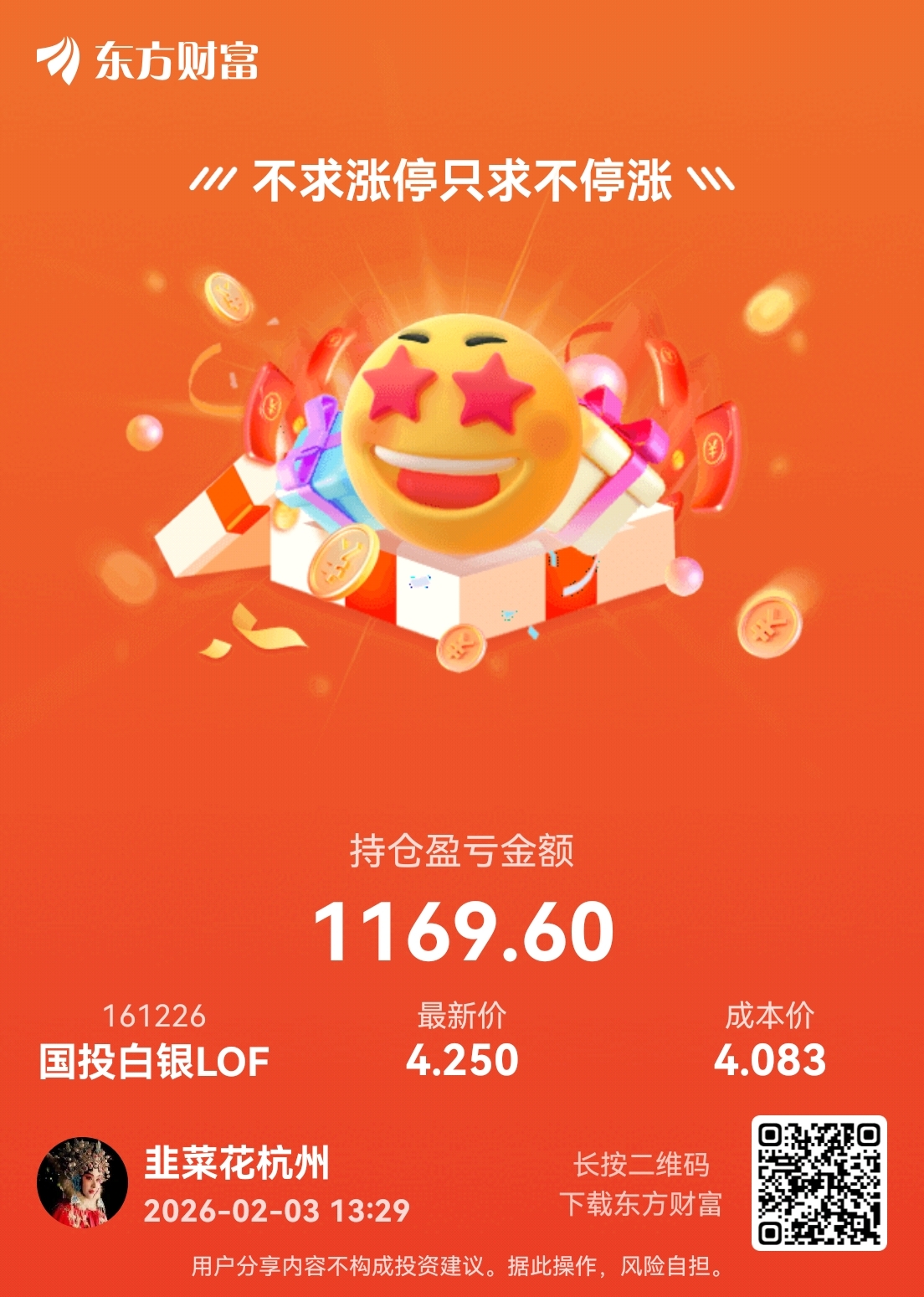 $国投白银LOF(SZ161226)$ 明天要负数了一直抛不掉