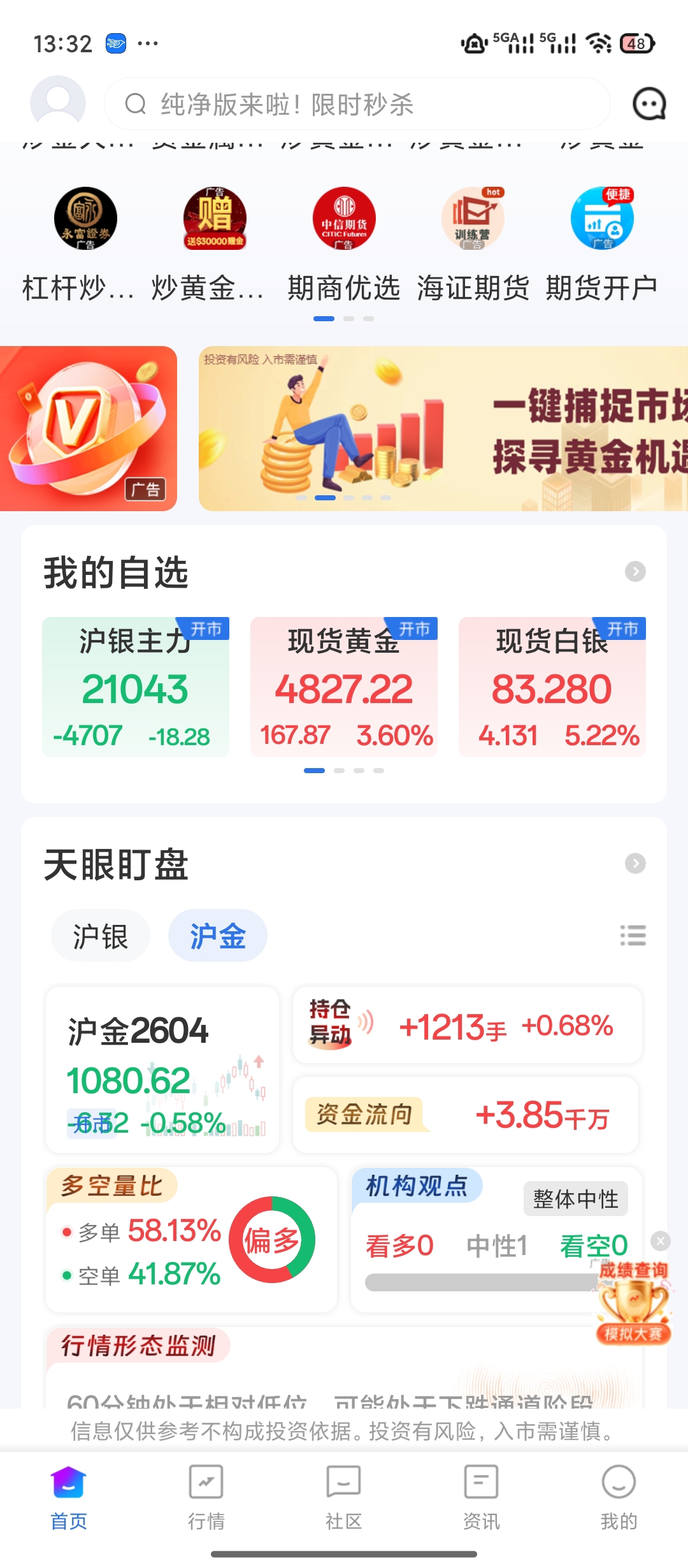 沪金开始拉升了,沪银空头还在犯贱,沪银能不能似啊