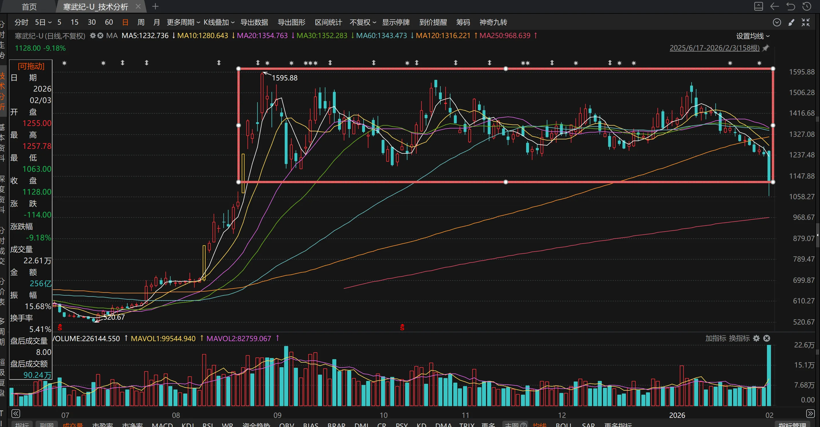 寒武纪现在股价1100+,茅台的股价却到了1400+。