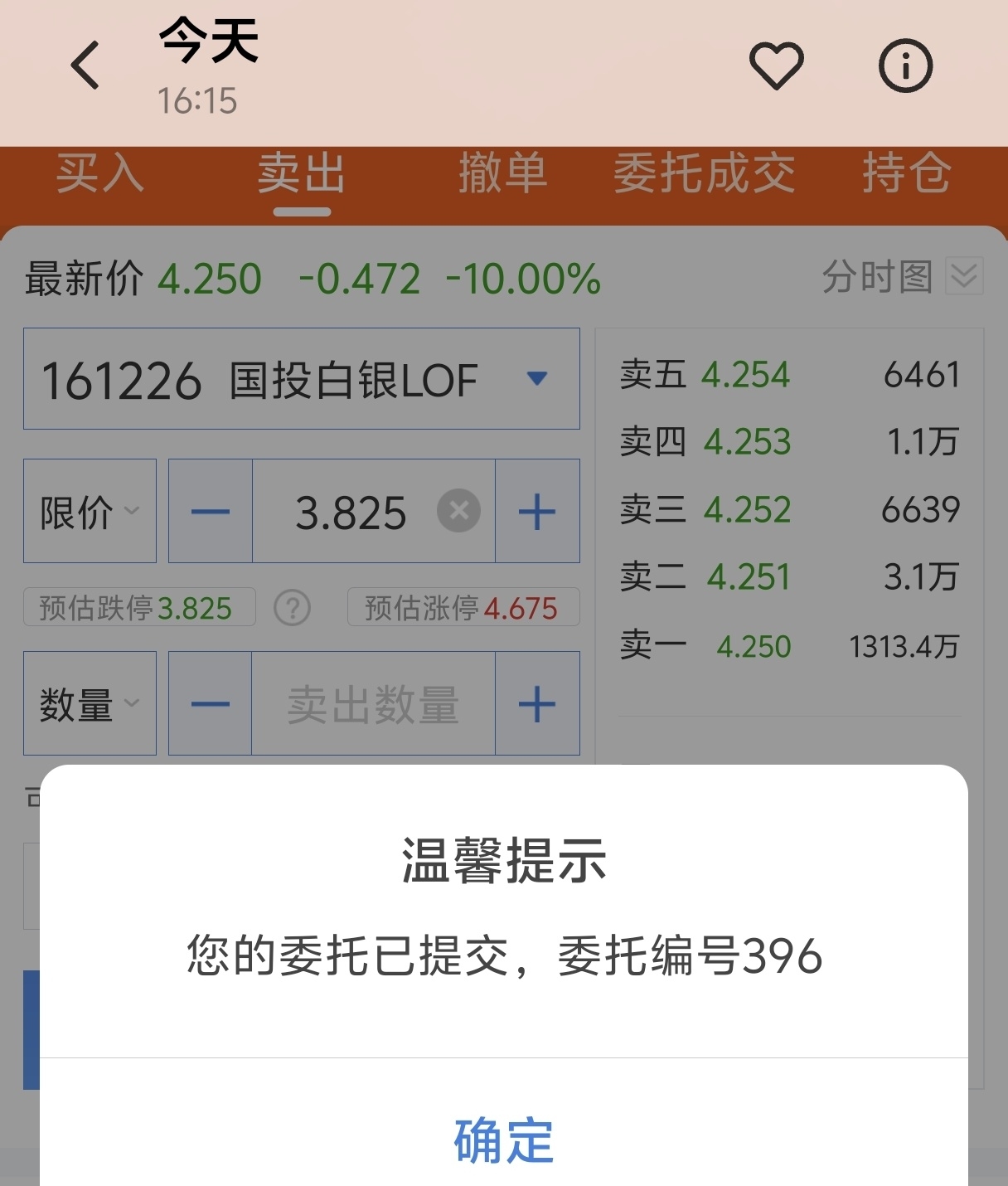 $国投白银LOF(SZ161226)$ 396,明天看运气了