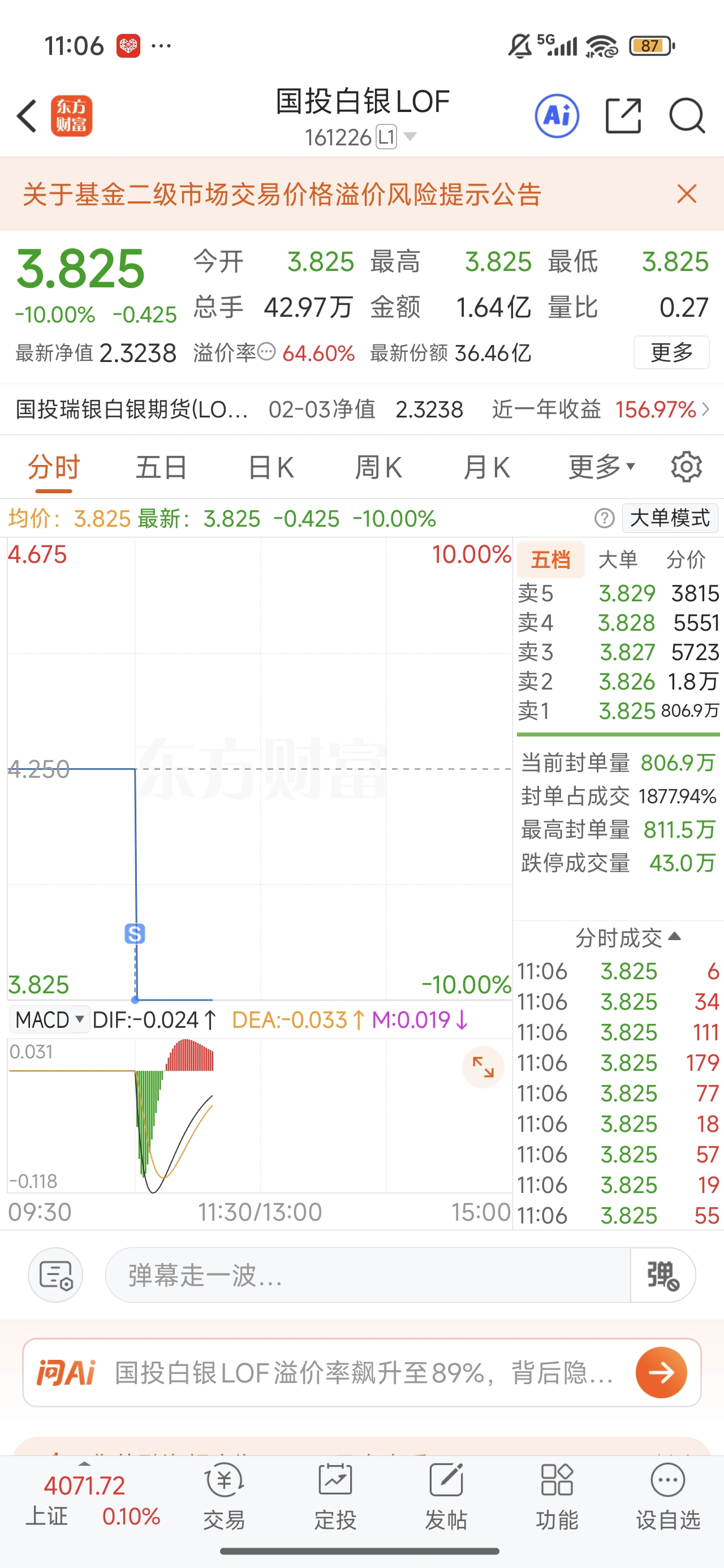 $国投白银LOF(SZ161226)$ 终于把我放出来了,连吃三个板