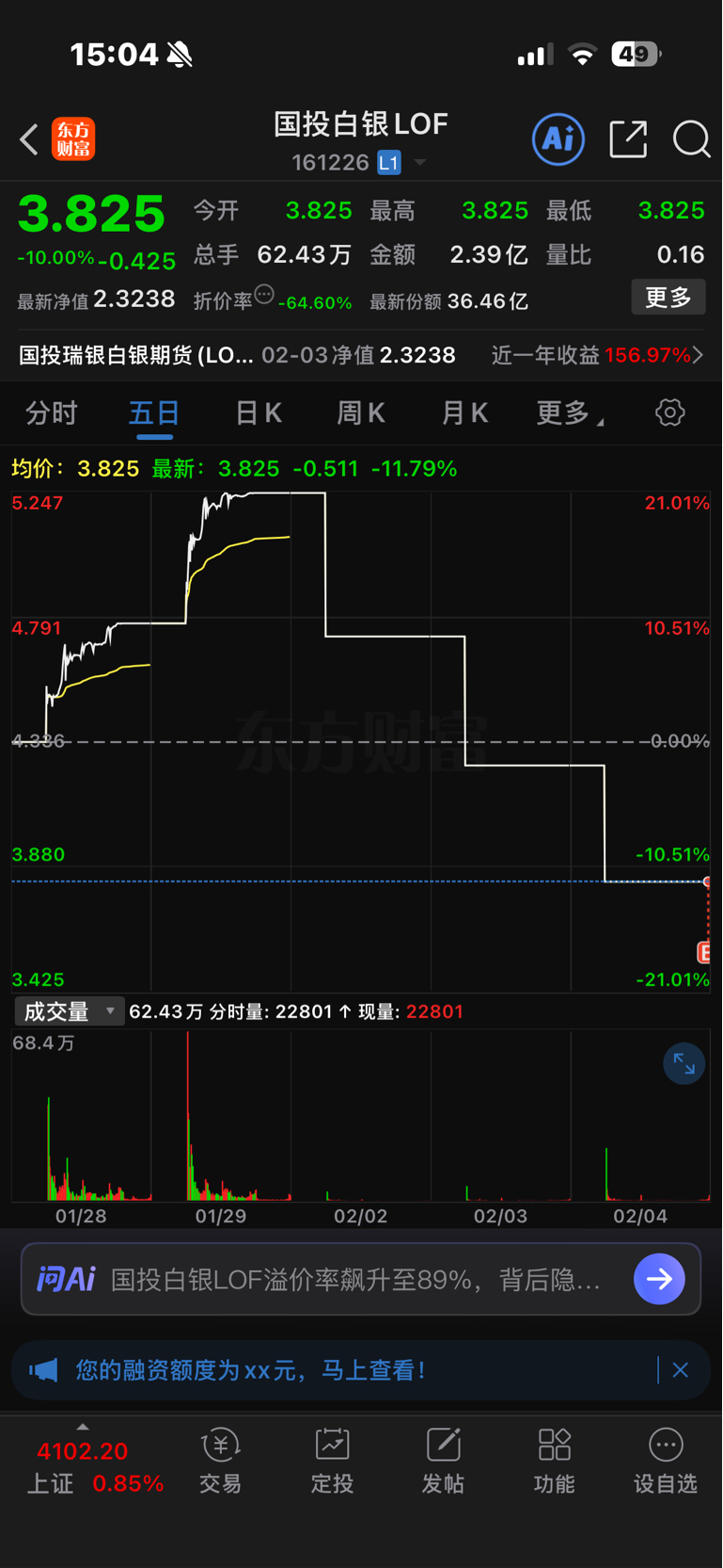 $国投白银LOF(SZ161226)$ 看见有色狂拽起来 尾盘冲进来了