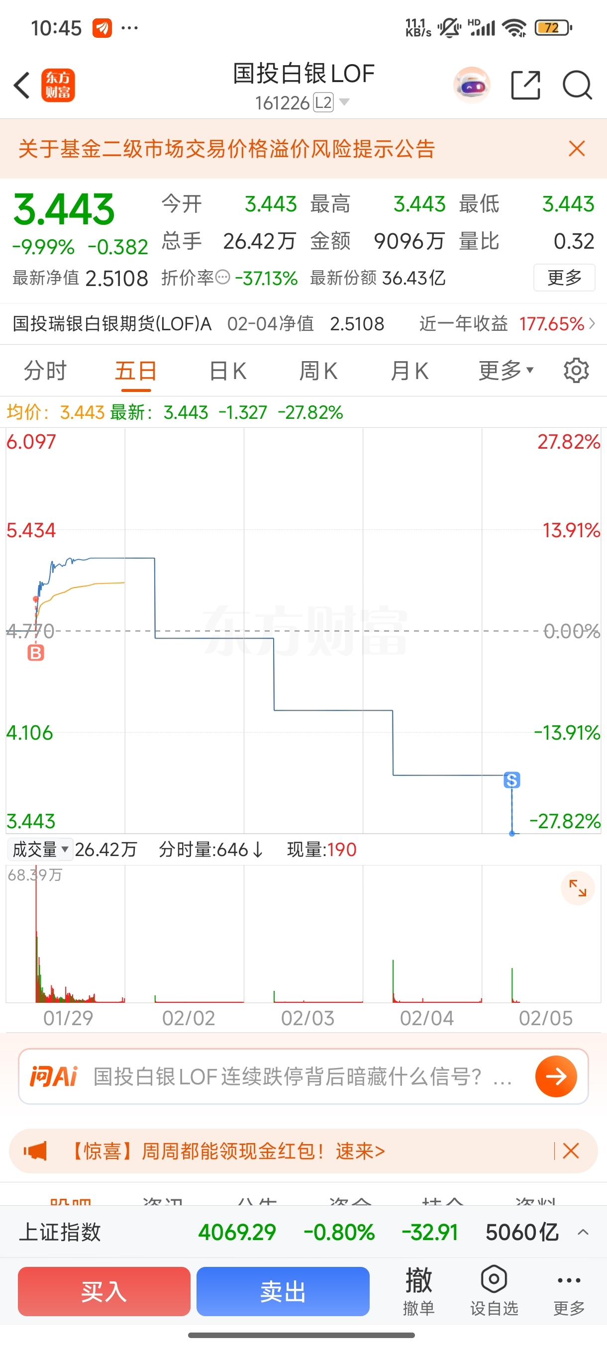 $国投白银LOF(SZ161226)$ 血的教训,以为周五开市,不讲武德,搞偷袭。四个跌停板。