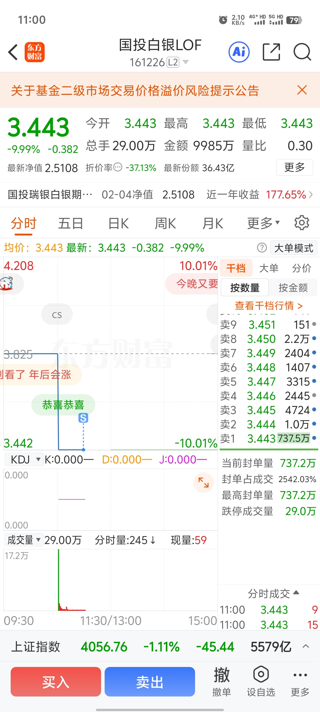 $国投白银LOF(SZ161226)$ 我还会回来的,如果不是我之前高点卖出过大部分,已经本金腰斩了,现在还好只是收益腰斩一半。我东财7号,昨天4点30挂的单
