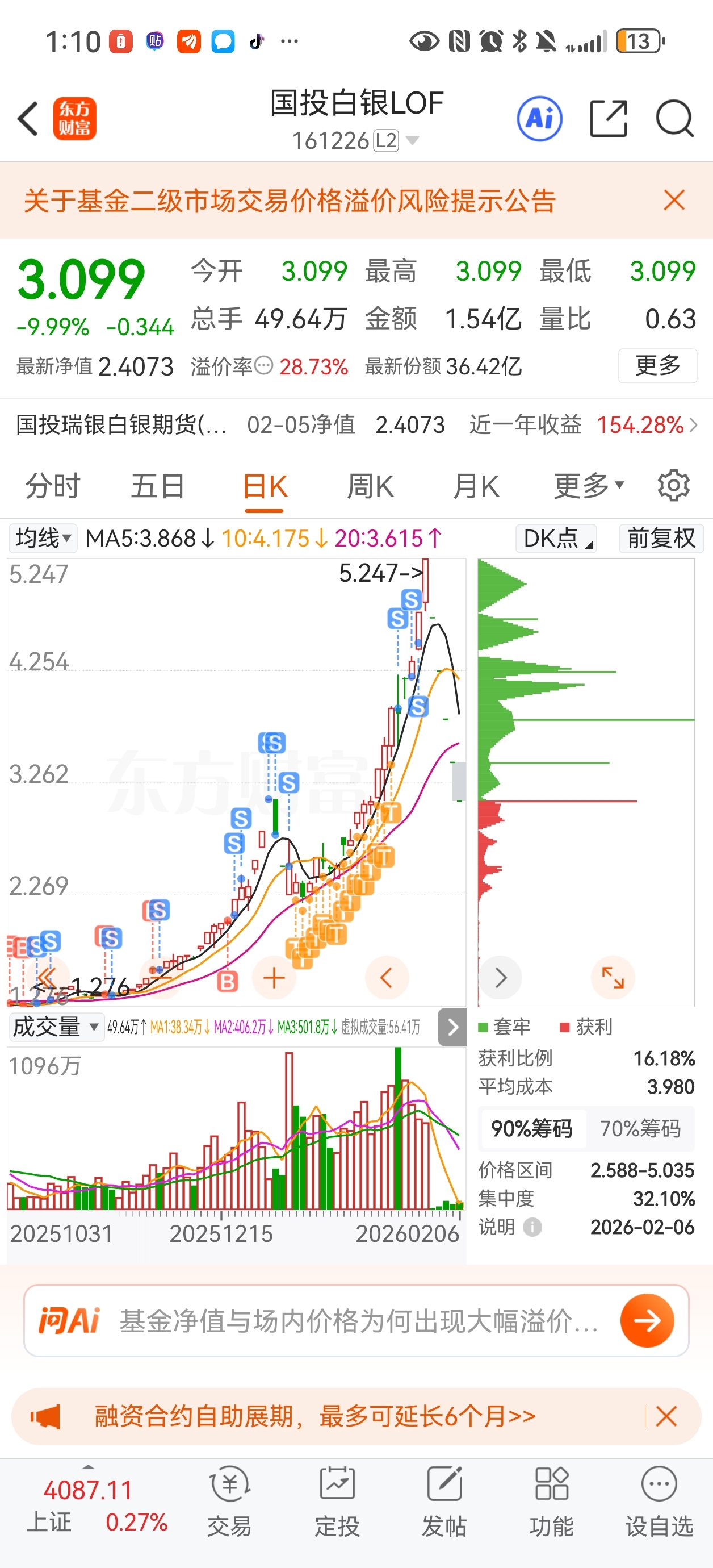 $国投白银LOF(SZ161226)$ 底仓还在里面吃跌停