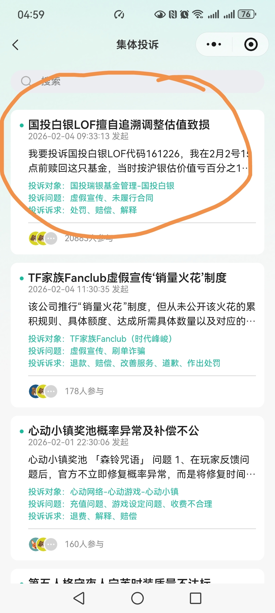 微信小程序搜消费保选择集体投诉。场内场外都可以投诉,有模版。