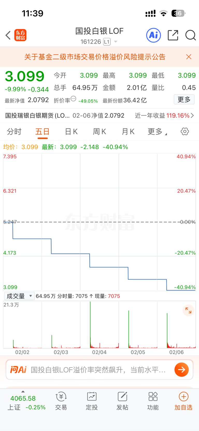 $国投白银LOF(SZ161226)$ 《国投白银下楼了》《为什么看不到k线》《我要看k线怎么显示了一个楼梯》