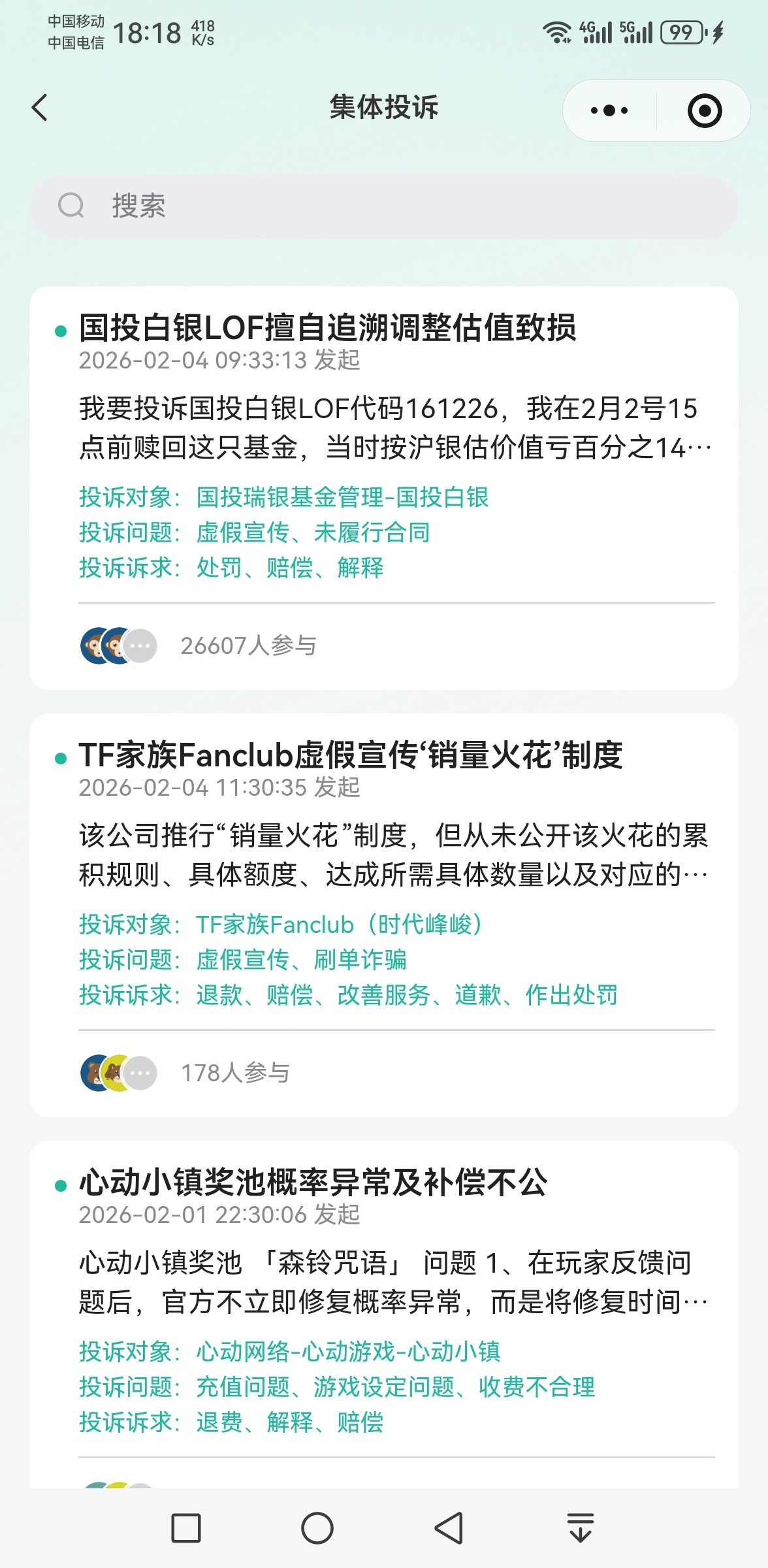 $国投白银LOF(SZ161226)$ 各位大神,我想请问一下?,场外的他们都去投诉了,现在有两三万人在投诉,他们只亏了30%啊,我们厂内的到现在都跑不出去,我们现在已经五个跌停了,比他们还要黑呀,本来他不挑衣架,我们星期三就可以跑出来了,他擅自挑衣架,导致我们一个礼拜都没跑出来,我们也去投诉,我刚才都已经去投诉了,就因为他擅自改规则,导致我厂内的连续跌停跑不出去