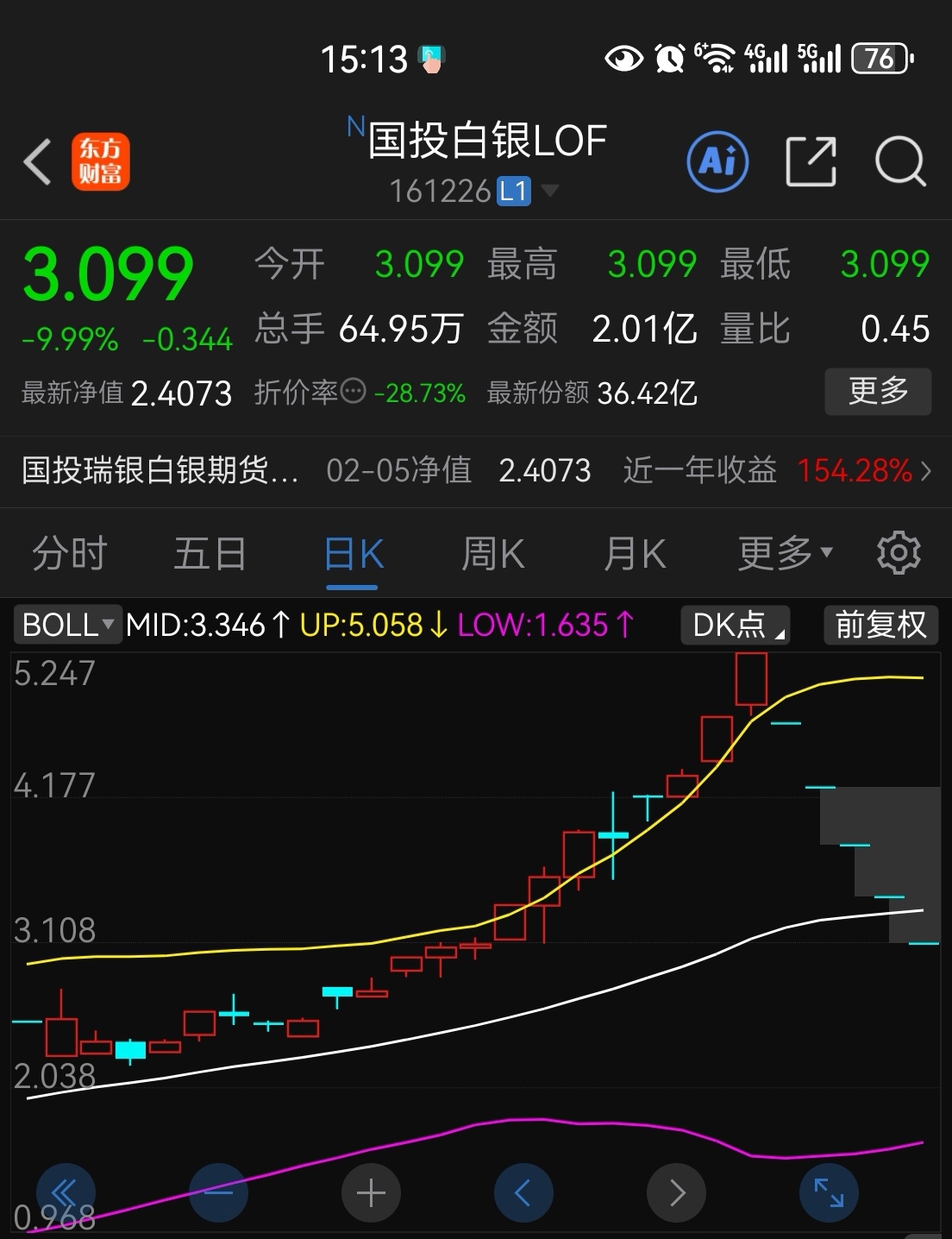 这是贵金属历史上最强烈的价格地震后的余震。投机属性的白银直接是布林中轨无支撑,COMEX白银周五直接暴跌至布林下轨,国投白银LOF本周5连跌停,距离高点已下跌60%。