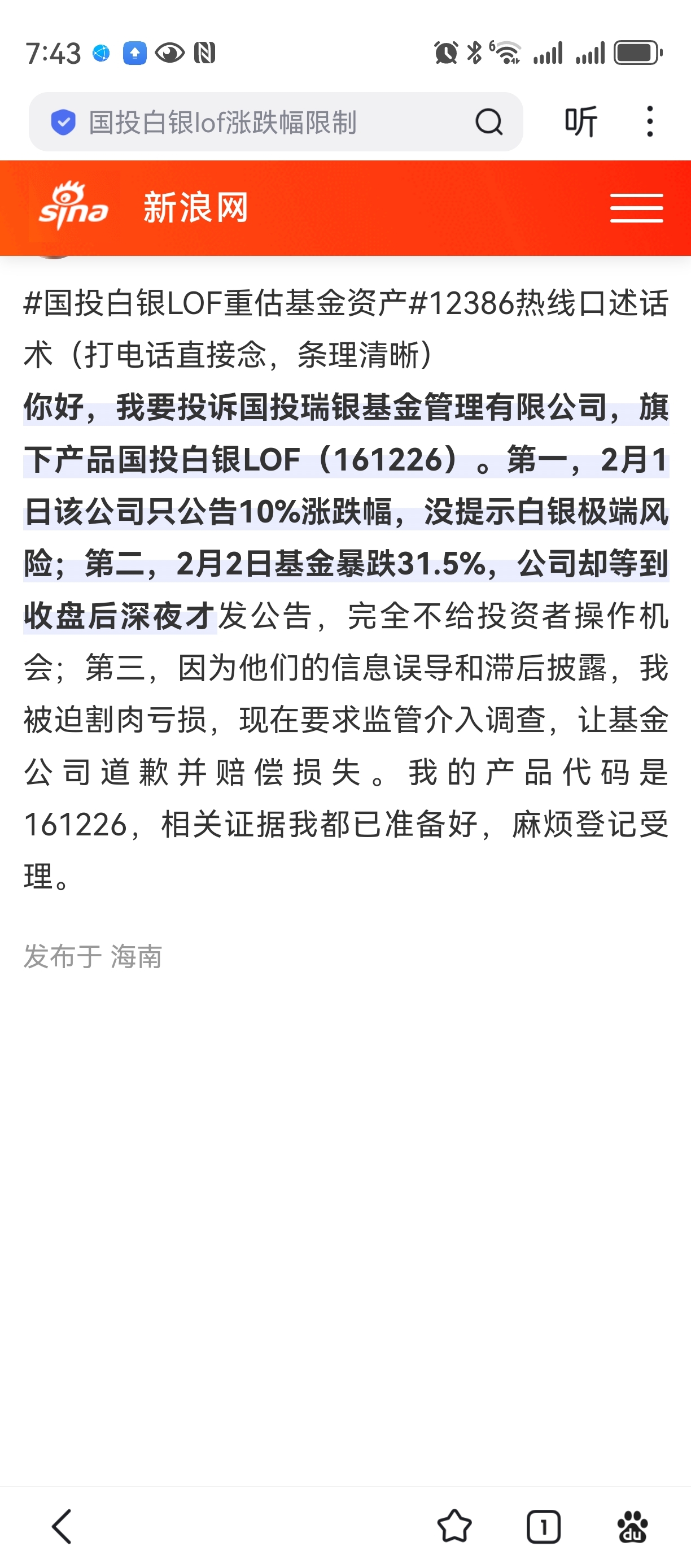 $国投白银LOF(SZ161226)$ 周一开始继续投诉,要一个明确的解决方案
