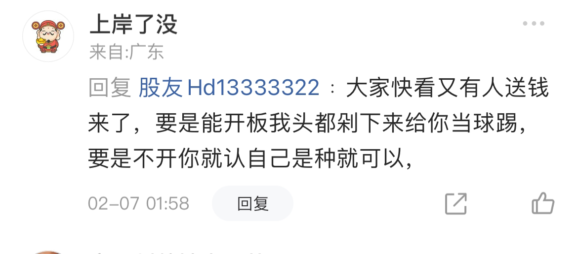 温馨提示: 1.根据《证券法》规定,禁止编造、传播虚假信息或者误导性信息,扰乱证券市场;2.用户在本社区发表的所有资料、言论等仅代表个人观点,与本网站立场无关,不对您构成任何投资建议。用户应基于自己的独立判断,自行决定证券投资并承担相应风险。《东方财富社区管理规定》