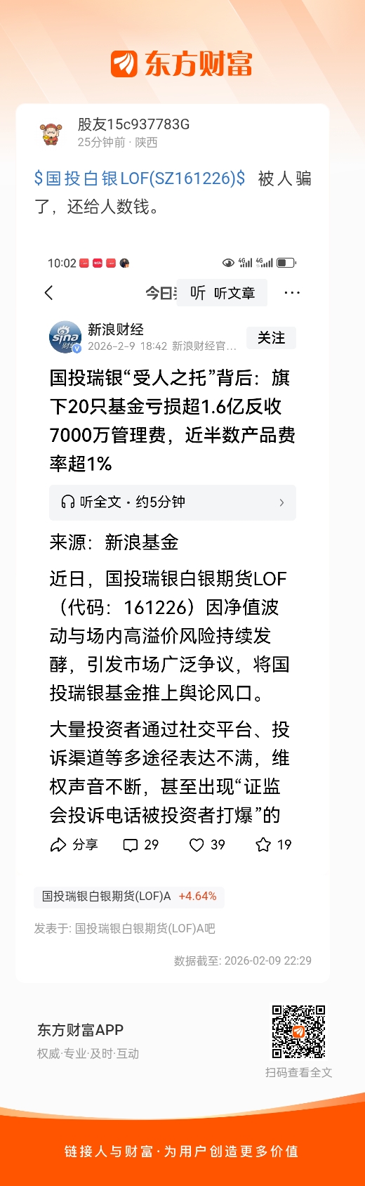 $国投白银LOF(SZ161226)$  被人骗了,还给人数钱。