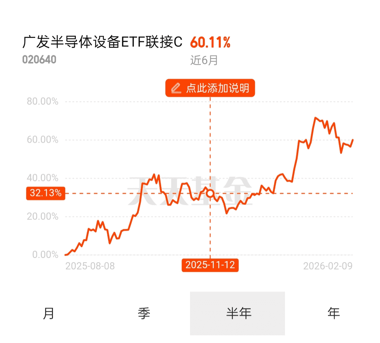 设备板块短期看情绪修复,中期看订单和业绩兑现,长期看国产能替代到什么程度。这是一个需要持续跟踪和耐心的赛道。像广发中证半导体材料设备ETF联接C这类工具,把专业的事交给基金经理,我们普通投资者只需要判断“国产半导体设备行不行”这个大方向就行。前面调整的时候我就没动,反而跌的时候加码,继续拿稳,看长期趋势$广发半导体设备ETF联接C$