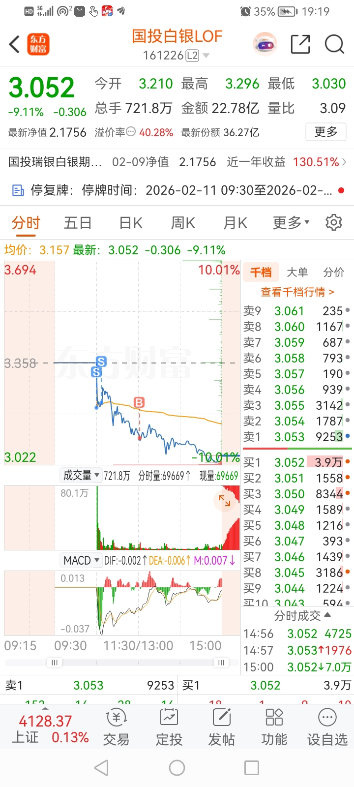 $国投白银LOF(SZ161226)$ 开盘负4个多点清仓了,负6个多点又接回来半仓,感觉还是接早了,溢价还有40%,明天会不会继续杀溢价呢?