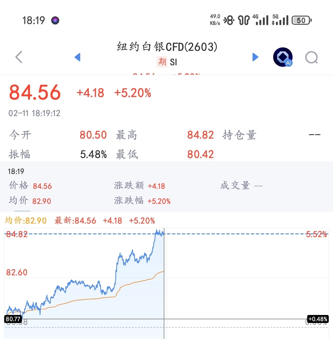 白银今晚若收到89上方,明天至少高开5个点。3点收盘时觉得买多了,现在6点多觉得