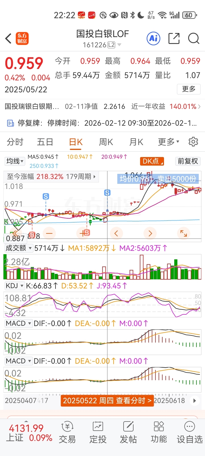 $国投白银LOF(SZ161226)$ 5月22日价格0.959记得当时溢价也就正负一个点