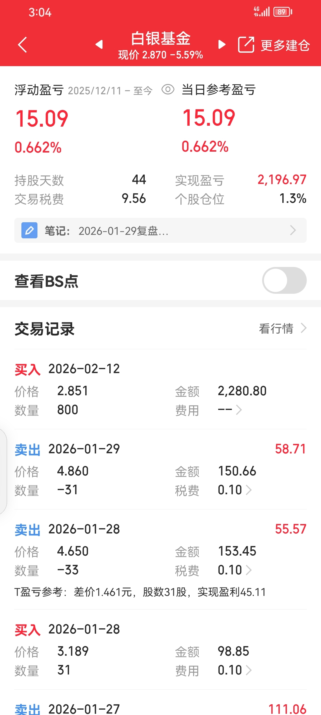 $国投白银LOF(SZ161226)$ 2.85元接了800股,当下有1400股,成本是2.85的国投白银