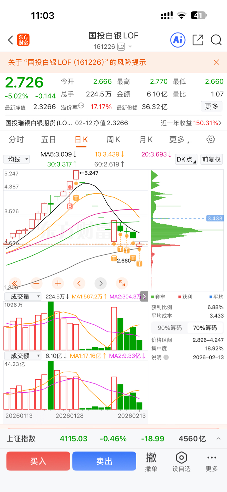 $国投白银LOF(SZ161226)$ 满仓被套山顶,开板每天做 T 到成本价了