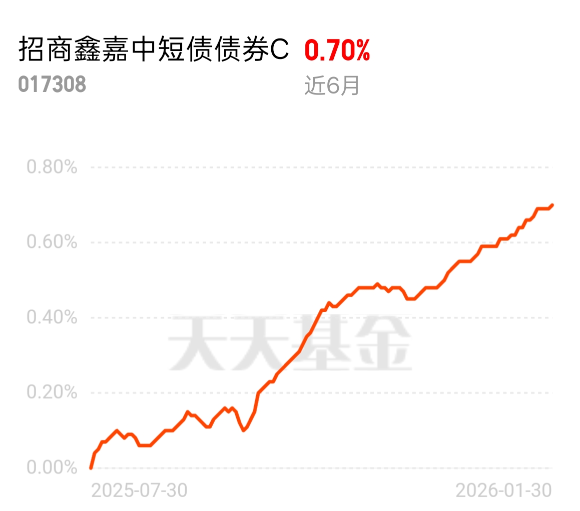 手里有止盈的闲置资金,别搁货币基金里吃薄利了,招商鑫嘉中短债债券 C 近 6 月 0.70%,收益稳还不锁钱,7 天免赎回费超方便,关键年前要限购,手慢就抢不到份额了$招商鑫嘉中短债债券C$