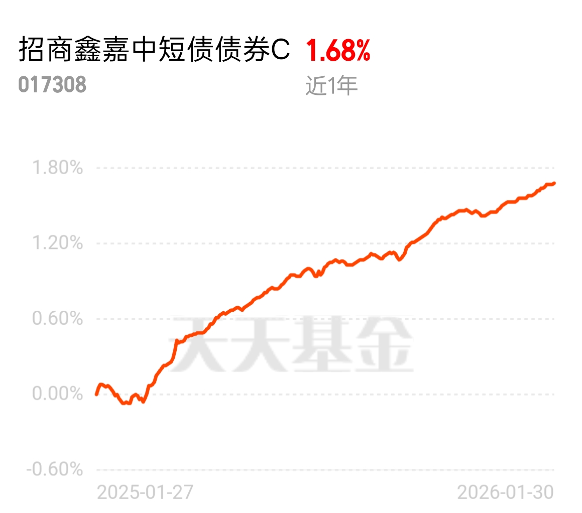 止盈落袋的资金要选对理财,货币基金收益太低不划算,招商鑫嘉中短债债券 C 近 1 年 1.68%,收益稳还灵活,7 天免赎回费想用就取,提醒大家这产品年前肯定要限购,别错过$招商鑫嘉中短债债券C$