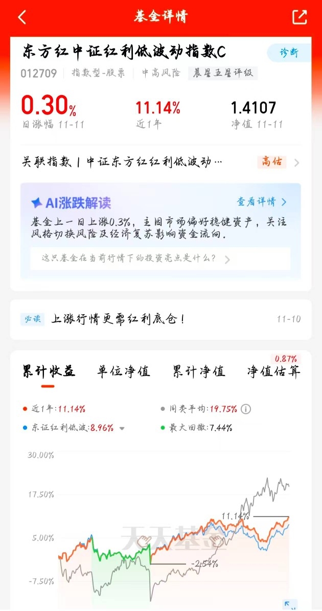 市场不好时我更爱红利基金,东方红这款近期回调中很坚韧,净值增长可观,资金爱它的持