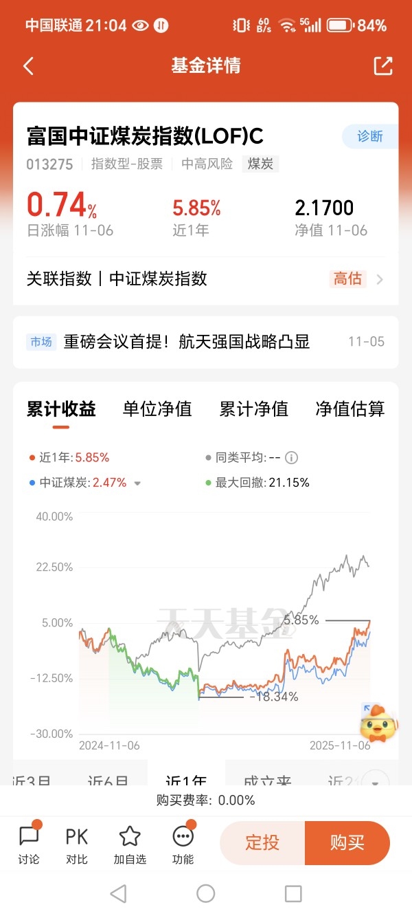 当前加仓了富国中证煤炭C,看中它跟指数贴得紧年化跟踪误差才0.45%,重仓股全是陕西煤业、中国神华这些央企煤炭龙头,近一月涨14%跑赢同类,老基金经理掌舵也安心。$富国中证煤炭指数(LOF)C$