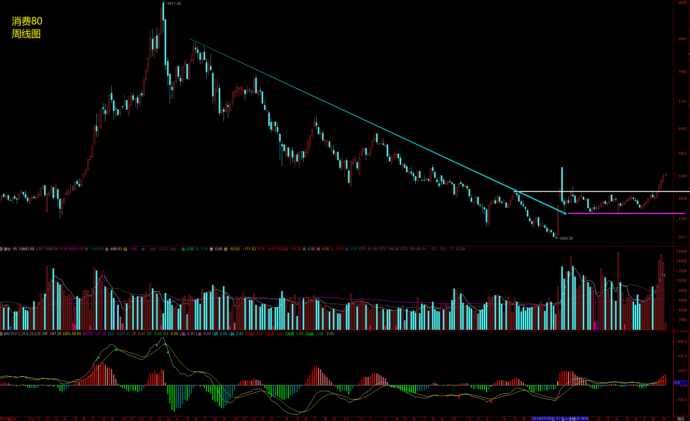 技术走势上,消费80周线上扭转了大周期下跌趋势,结束了底部震荡箱体,突破箱体上轨压制,打开中期行情空间;成交底部放量,长线资金吸筹迹象明显,中期行情值得期待。