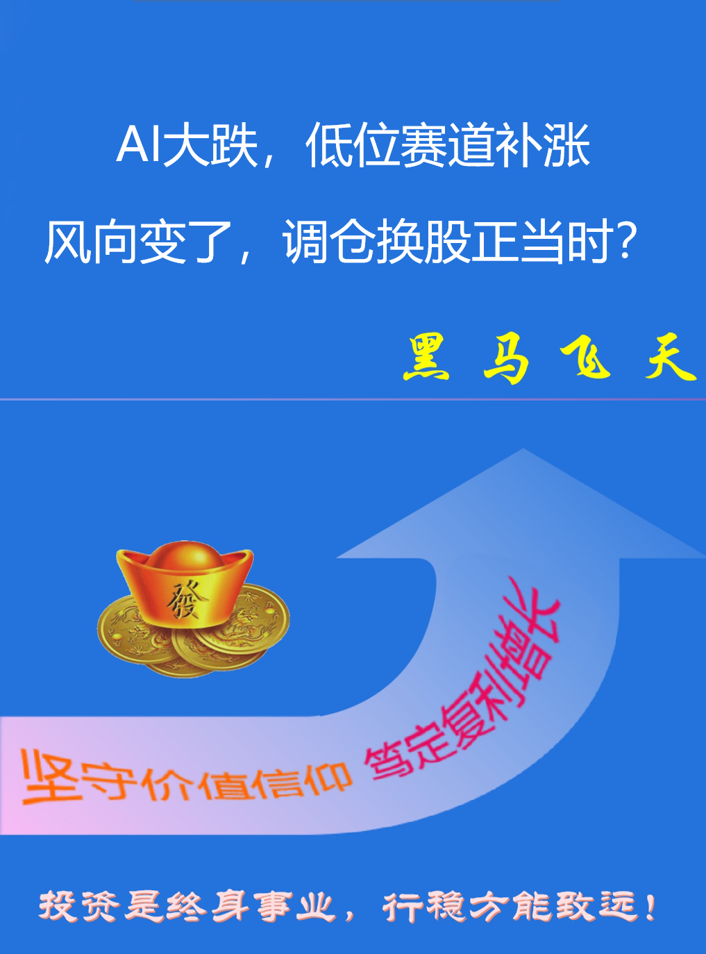 AI赛道继续释放风险,通信设备盘中大跌超6%,三大人气龙头新易盛、中际旭创、天孚通信盘中大跌超10%,带着一帮科技成长类标的下瀑布。近日黑马多次提醒科技赛道调整风险,并做了大减仓,转战大消费、大健康、化工等低位滞涨赛道。关键时刻黑马的盘感还是靠谱的哦。爱粉们看今天领涨板块,刚好就是黑马新入仓的大消费、大健康、化工,还有偏防守的农林牧鱼板块,这说明市场风格正在由强进攻的科技成长转向偏防守的价值成长,低位滞涨赛道有望波段补涨,行情开启新轮动。于是,今天再加仓一笔$招商上证消费80ETF联接C(OTCFUND|004407)$)、$招商中证白酒指数(LOF)C(OTCFUND|012414)$,无卖出操作,所有中线标的继续持有待涨。