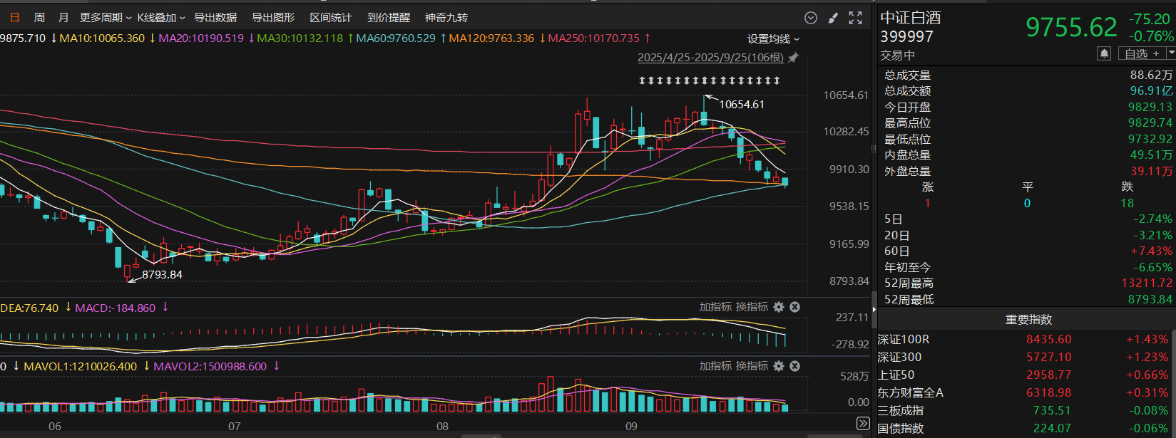 从技术面上,60日均线和120日均线交汇,说明中期趋势开始逆转长期趋势,但是又赶上近期白酒回调,这个地方形成了一个3线交汇,卖盘可能会衰减