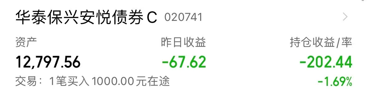我选择的继续加仓$华泰保兴安悦债券C(OTCFUND|020741)$