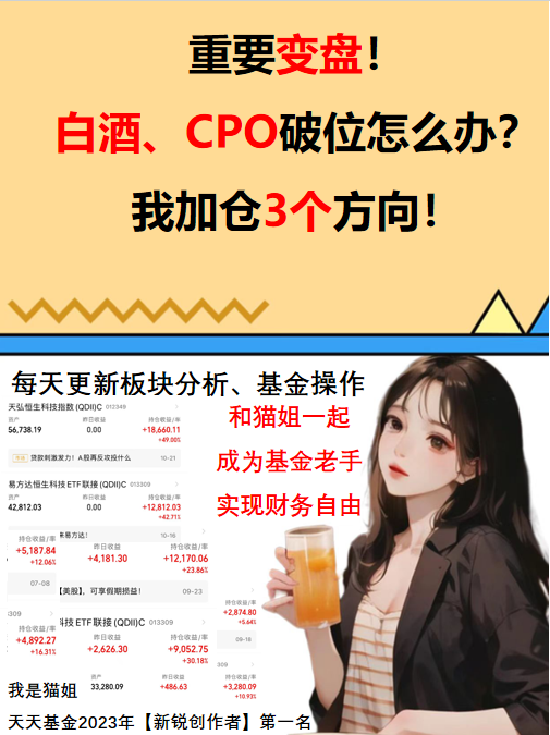 但是阶段性我想谨慎一点,打算转入一些防守方向,近期在减新能源以及一些含有CPO的主动基