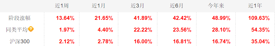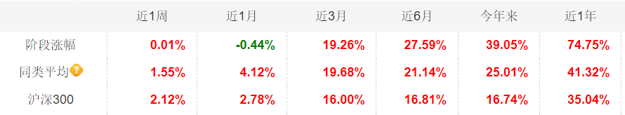 近1年大涨74.75%,跑赢同类平均超33%,跑赢沪深300超39%,不靠蹭热点能跑出如此优秀业绩着实不一般。今天加仓一笔,后市如有调整择机加大投入。