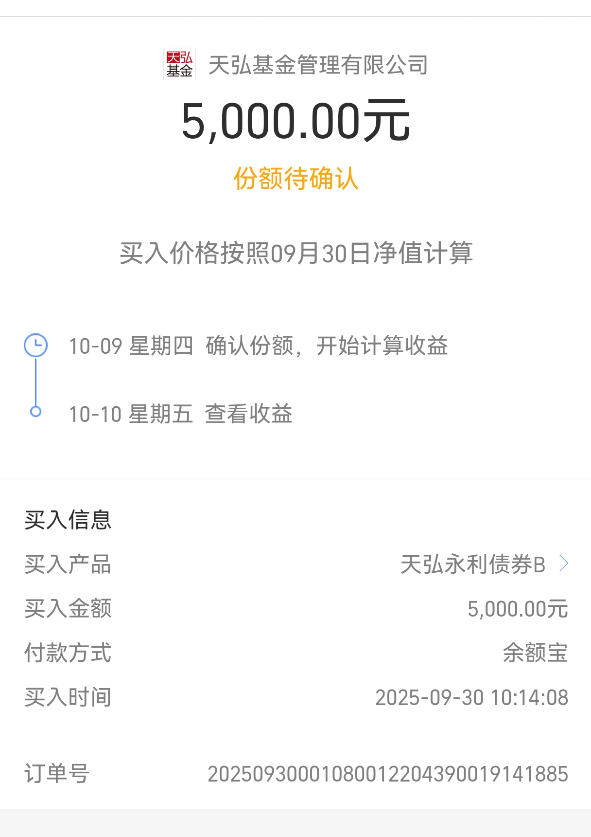,昨天永利也收蛋8个,走势有所向好,近三个月收蛋220个,近一年收益669个,这比存银行强多了,这不是纯债基,就现在这样的行情,还是股债一起搭配为好,持仓里面99.91%债券,14.41%股票,股基覆盖面也很广泛,涉及到的行业有科技、消费、医药等,不局限在单一板块,这种债券打底,同时配置股基,进可攻退可守,而且双节期间债基部分还有票息,风险相对可控,拿着比较安心。