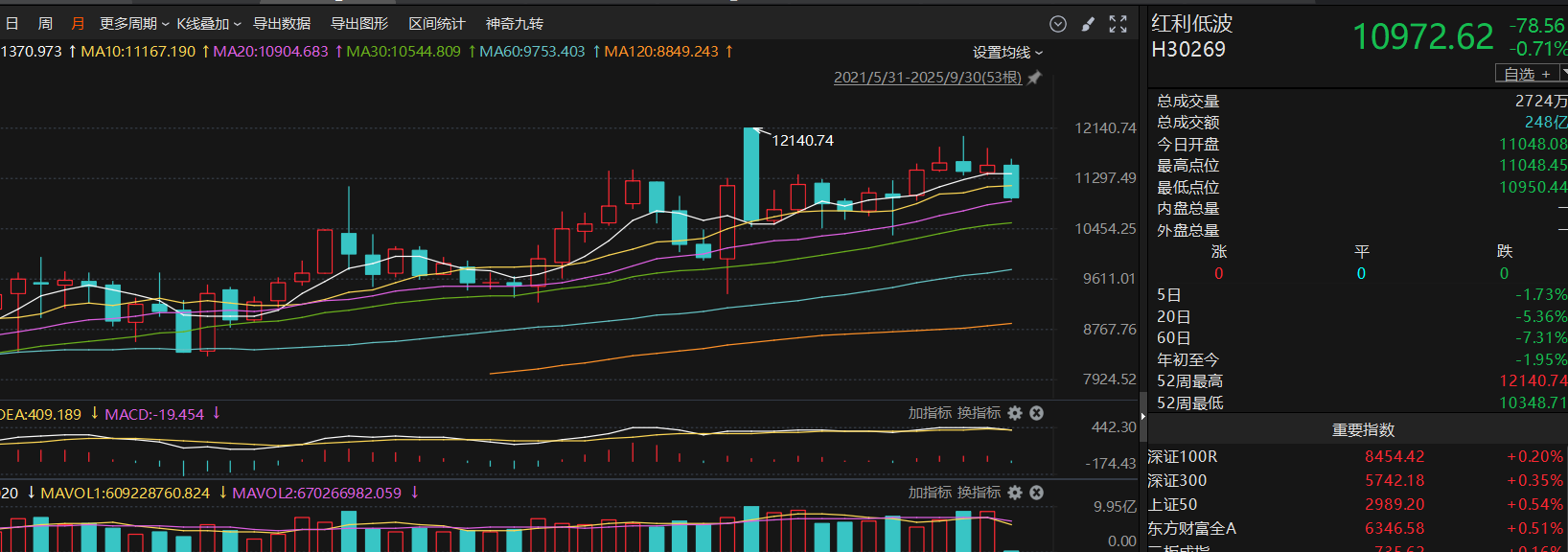 红利指数已经跌了很长时间了,从时间上和空间上来说都比较到位