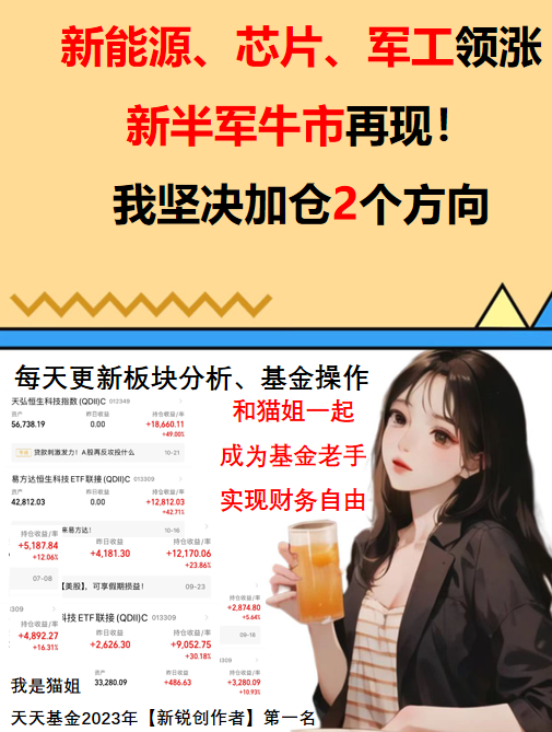 近期加仓的恒生科技、军工,还有昨天追击的新能源都吃肉