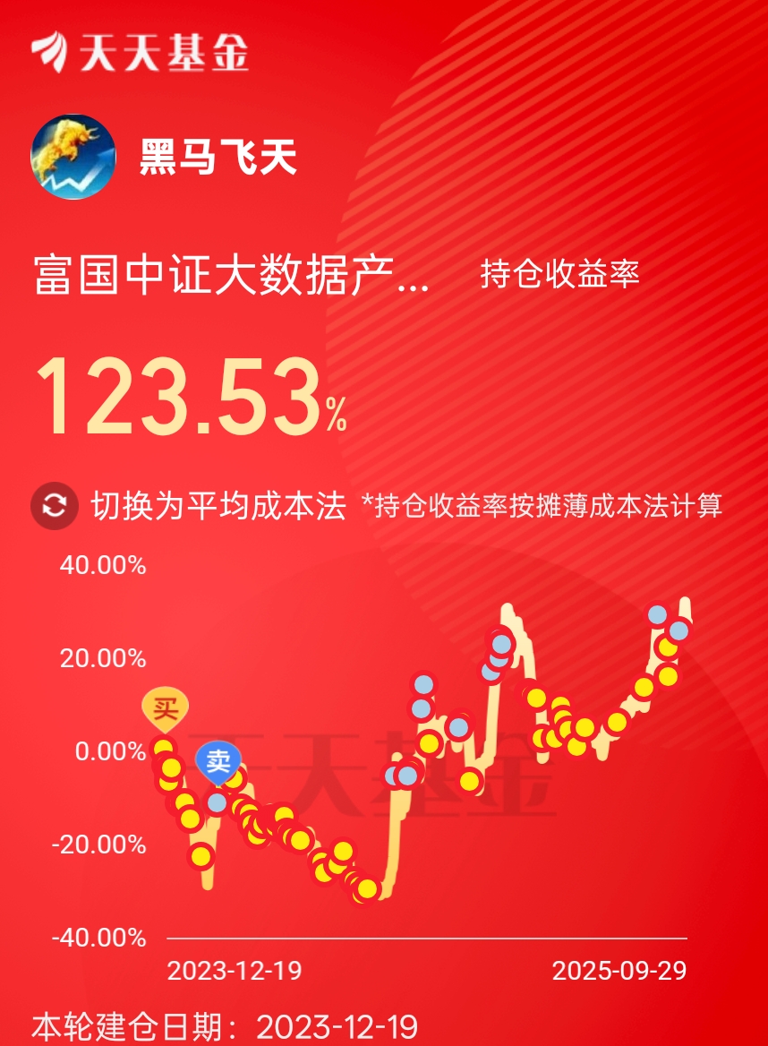 $富国中证大数据产业ETF发起式联接C(OTCFUND|018135)$投了650多天,通过反复低吸高抛积累了123.53%的浮盈。现在还不到止盈时候,打算继续中线持有。高点附近小幅减仓,接下来准备逐步回补筹码,今天先加仓一笔,节后如有大点的调整准备加大低吸力度。