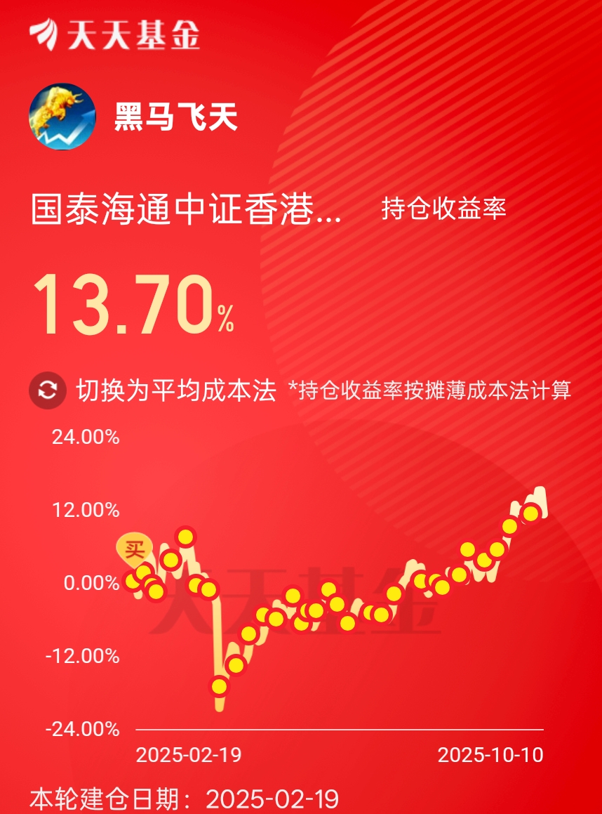 最近港股科技走得有点弱,主要是外围扰动所致,行业自身并没有什么问题,市场逻辑依然过硬,黑马继续中线看好,今天逢大跌低吸一笔手中的$国泰海通中证香港科技指数发起(QDII)C(OTCFUND|022122)$。