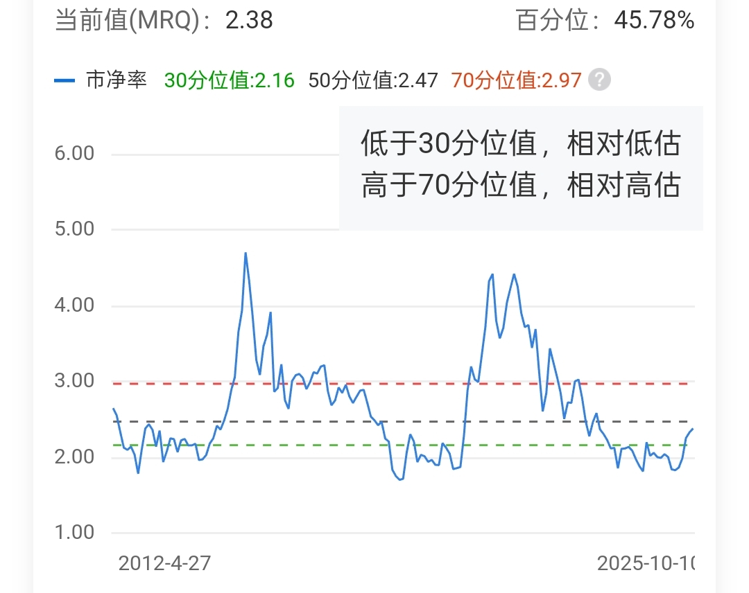 市净率处于历史低位,中线性价比很高,位置低,持有更放心。