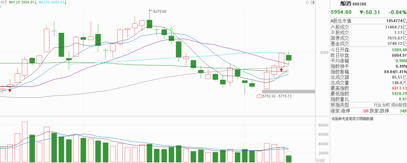 白酒:猛攻收复半年线!三连阳后突然回落,是主升浪还是假动作?