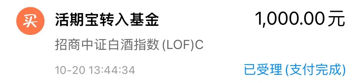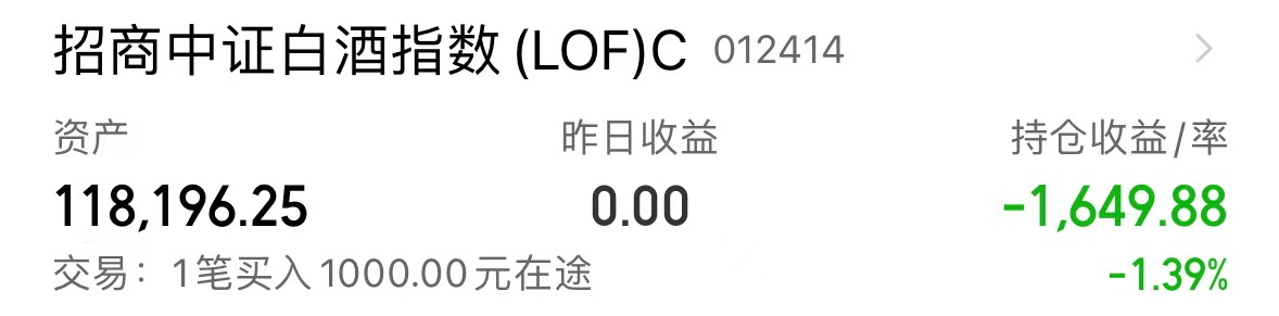 今天继续逢低加仓$招商中证白酒指数(LOF)C(OTCFUND|012414)$