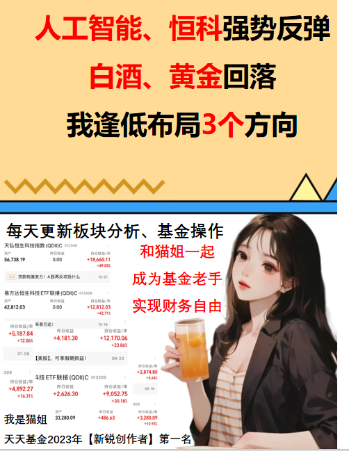 今天继续逢低加仓科创100、创业板人工智能、白酒