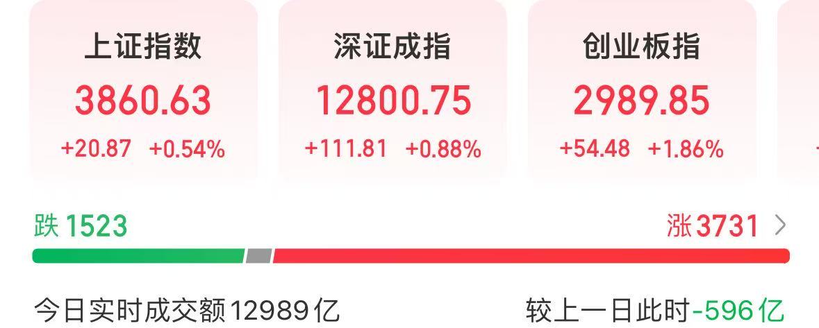 盘面上,截至我发文,上证指数上涨0.54%,深成指数上涨0.88%,创业板指数上涨1.86%