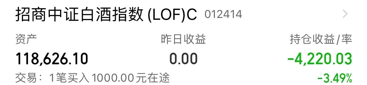 我今天继续加仓$招商中证白酒指数(LOF)C(OTCFUND|012414)$