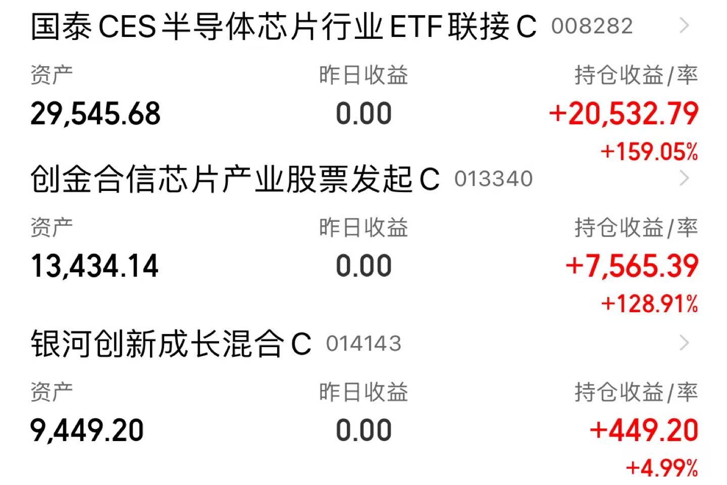我最近开始选择主动的方向,而不再选择被动的方向,主要加的是$银河创新成长混合C(OTCFUND|014143)$$创金合信芯片产业股票发起C(OTCFUND|013340)$