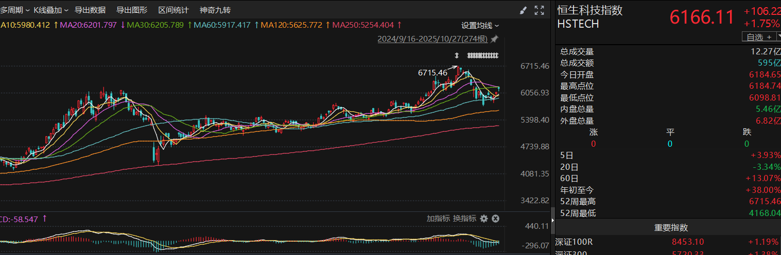 今天恒生科技继续反弹,量能进一步回升,10月美联储继续降息在即,资金有可能回流恒生科技。