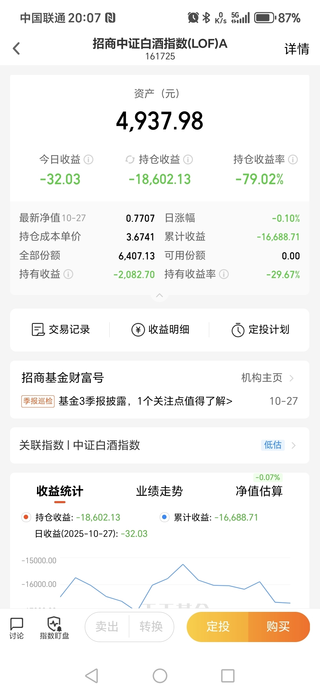全部割了,持有了五年多,五万块钱赔了一万八,七月9号买的五万科技基金,今天已经挣