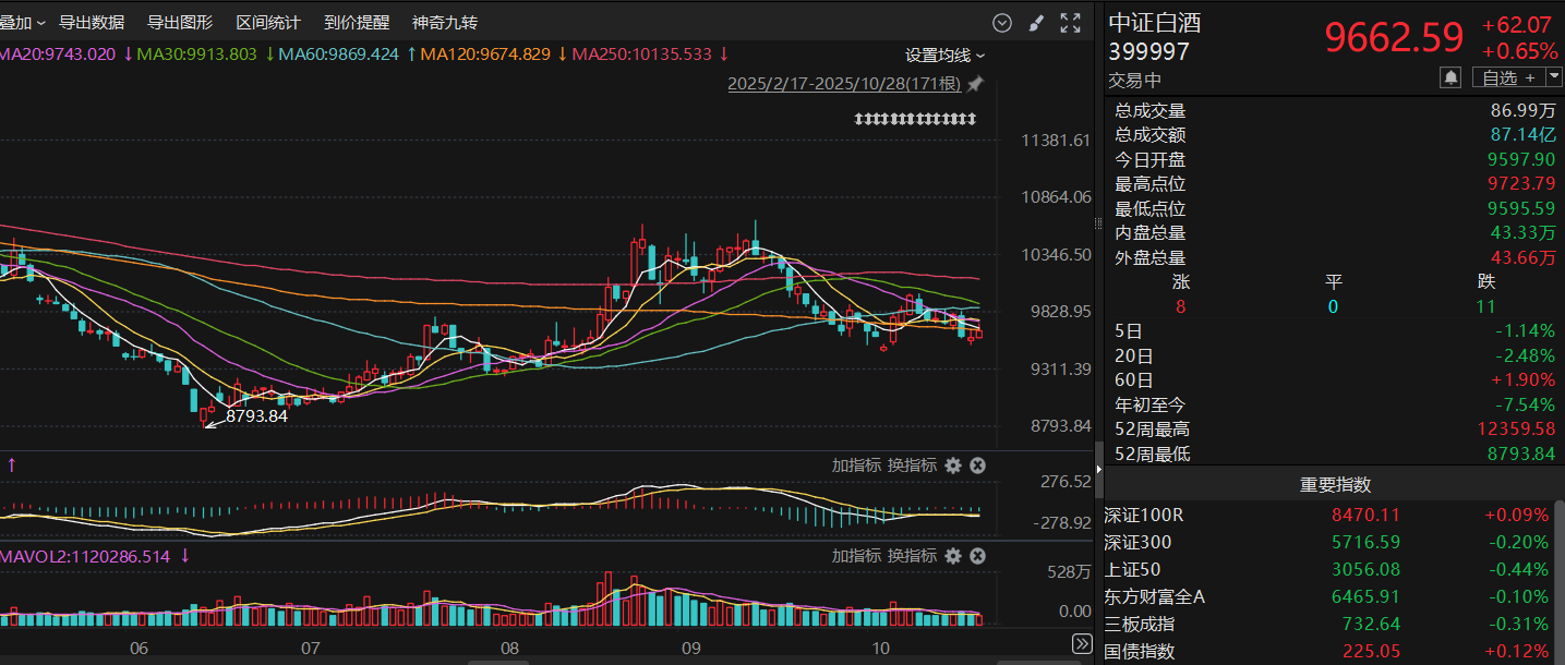 白酒今天上涨走势,最近科技风格如果出现回调,消费等顺周期方向就会迎头赶上,这可能是一种跷跷板效应,白酒目前的估值水平较低,对于我来说也是坚持左侧布局