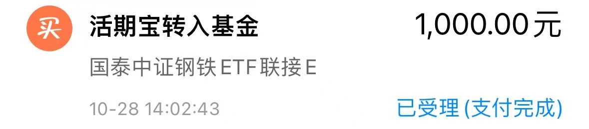 我今天继续加仓$国泰中证钢铁ETF联接E(OTCFUND|022586)$