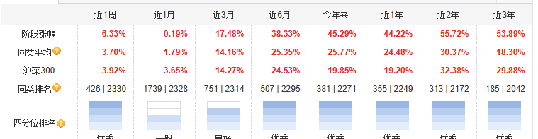 这只基金长期表现比较好,近1年收益率44.22%,近3年收益率53.89%,业绩上可谓穿越牛熊,进攻的时候不输同类,最大回撤控制能力优于同类主动基金平均水平,长期业绩的稳定性表现比较好,我是把它当做底仓来配置。
