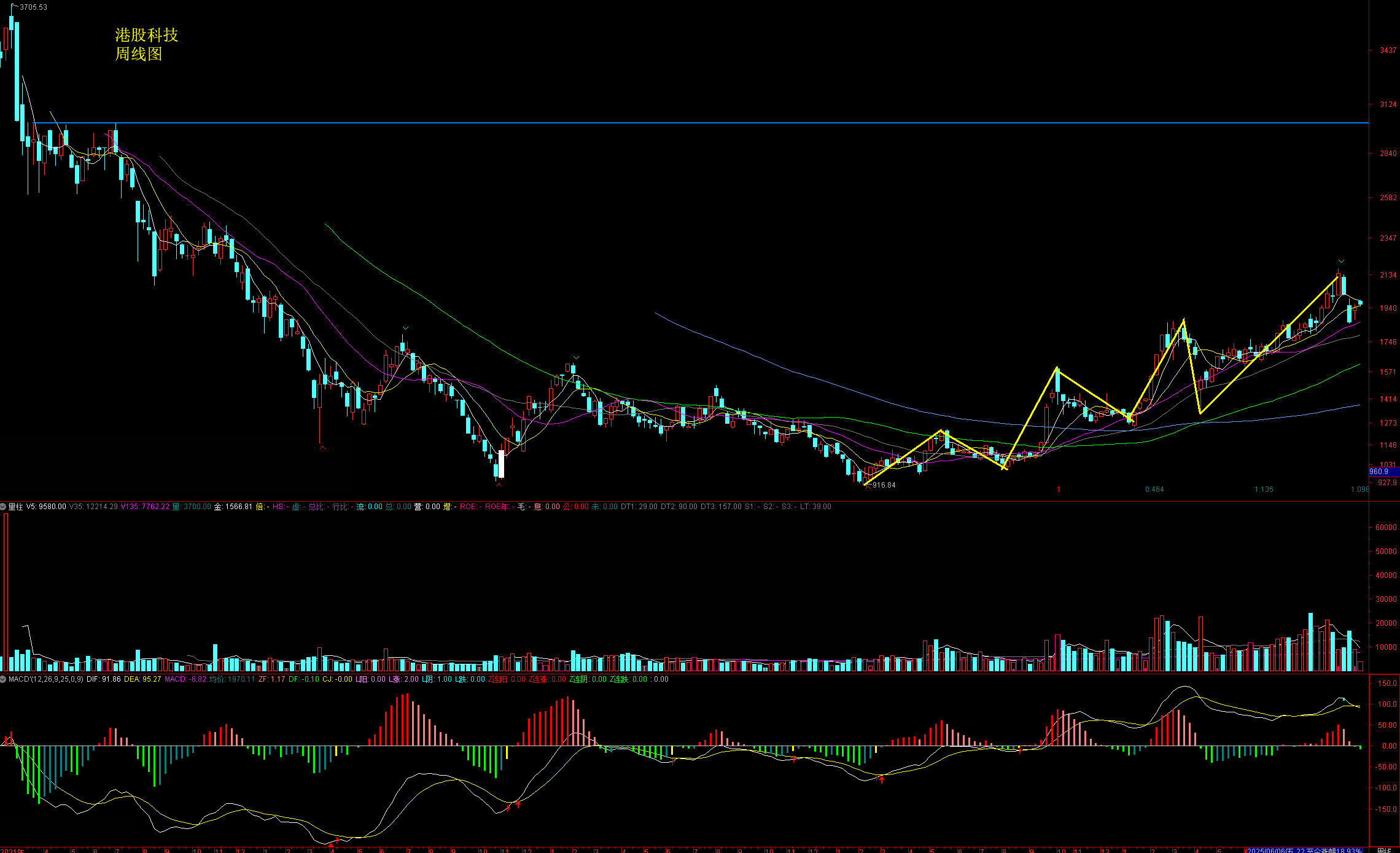 技术走势:周线走出大圆弧底,估值与位置均处于相对低位,距离上轮牛市高点还有很大空间,中线潜力良好,目前仍是良好的定投机会区。